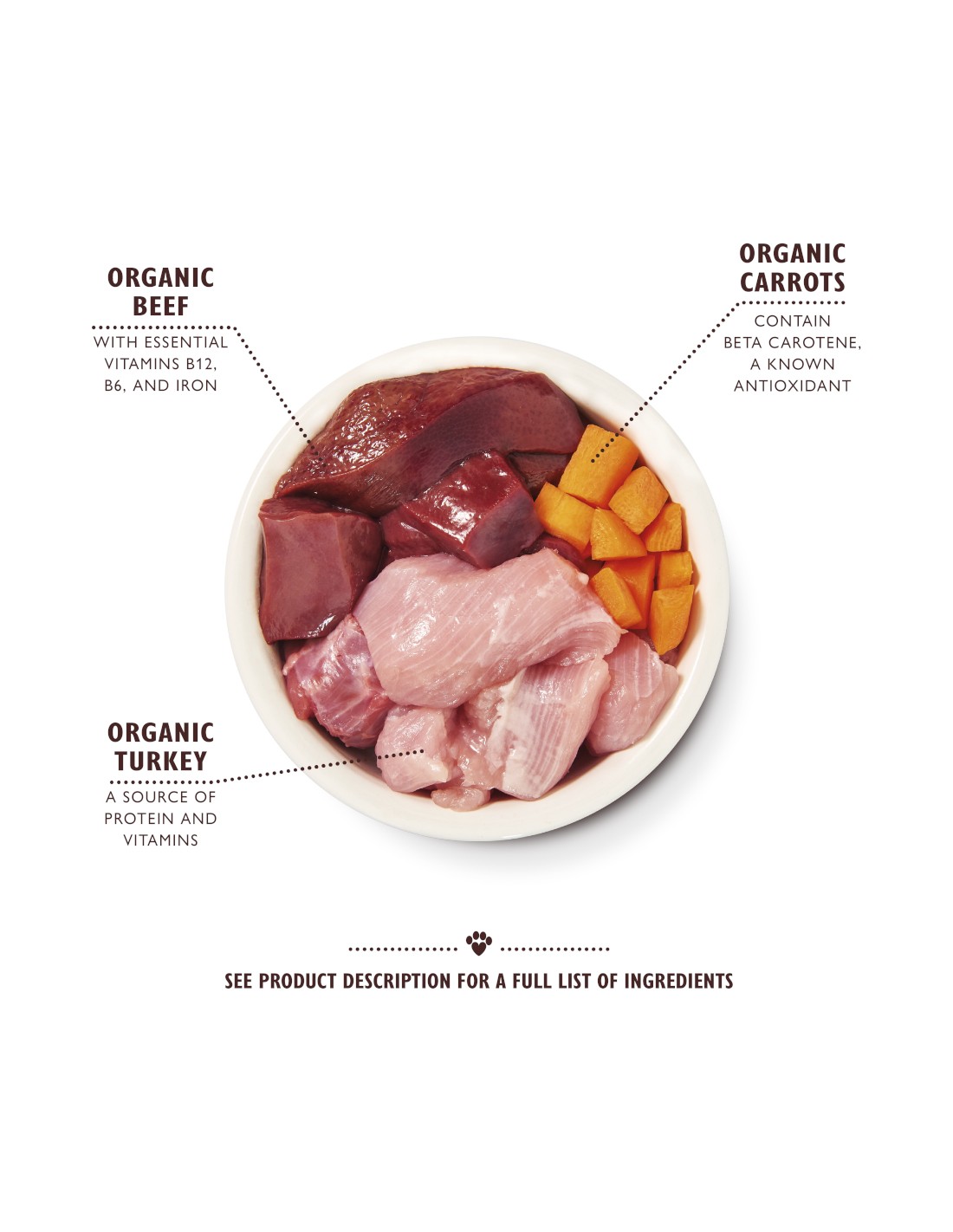 Con 19 bandejas de 85 gramos, esta cena de pavo orgánico está hecha con ingredientes frescos y naturales, sin granos ni aditivos artificiales.