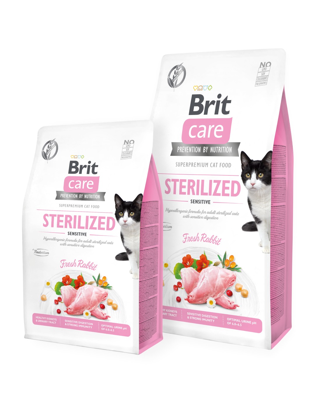 Descubre el BRIT CARE CAT GRAIN FREE STERILIZED SENSITIVE, una comida seca completa para gatos adultos esterilizados con digestión sensible.
