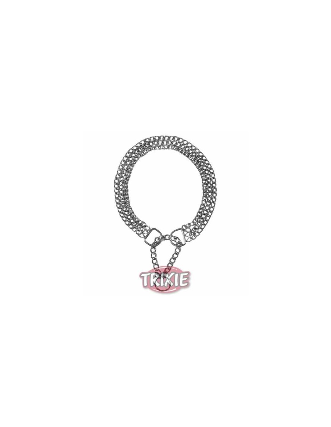 El collar estrangulador de 3 filas de Trixie es una herramienta de entrenamiento esencial para dueños de perros que buscan corregir comportamientos no deseados de manera efectiva. Fabricado con cuero de alta calidad y eslabones metálicos resistentes, este collar proporciona un control suave y seguro durante paseos y entrenamiento. Las tres filas de eslabones permiten un ajuste preciso para evitar el estrangulamiento excesivo, lo que lo hace adecuado para perros de todas las razas y tamaños