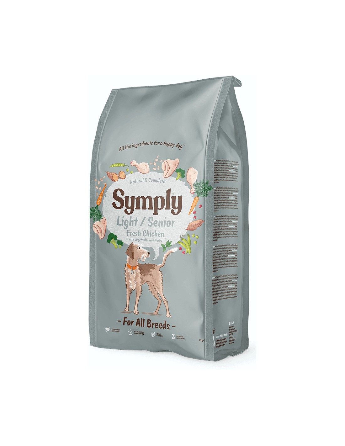 Ideal para perros mayores o con sobrepeso, el Symply Light y Senior Pollo Fresco promueve un estilo de vida saludable y activo.