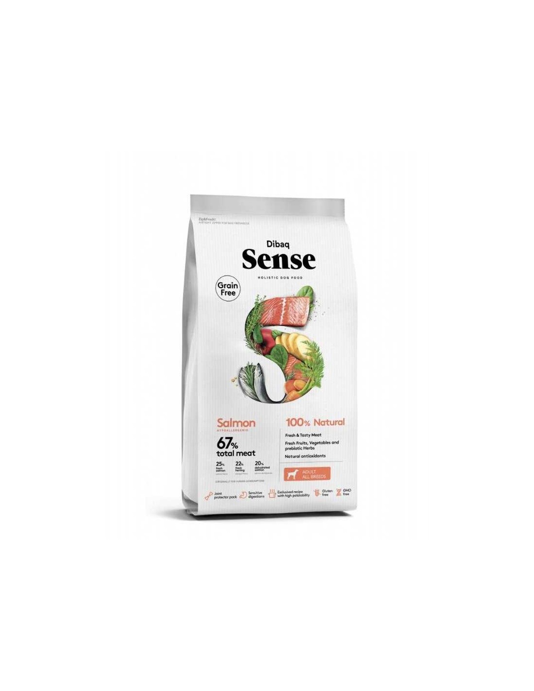 El DIBAQ SENSE ADULT SALMON es un pienso sin cereales, ideal para perros adultos de todas las razas.