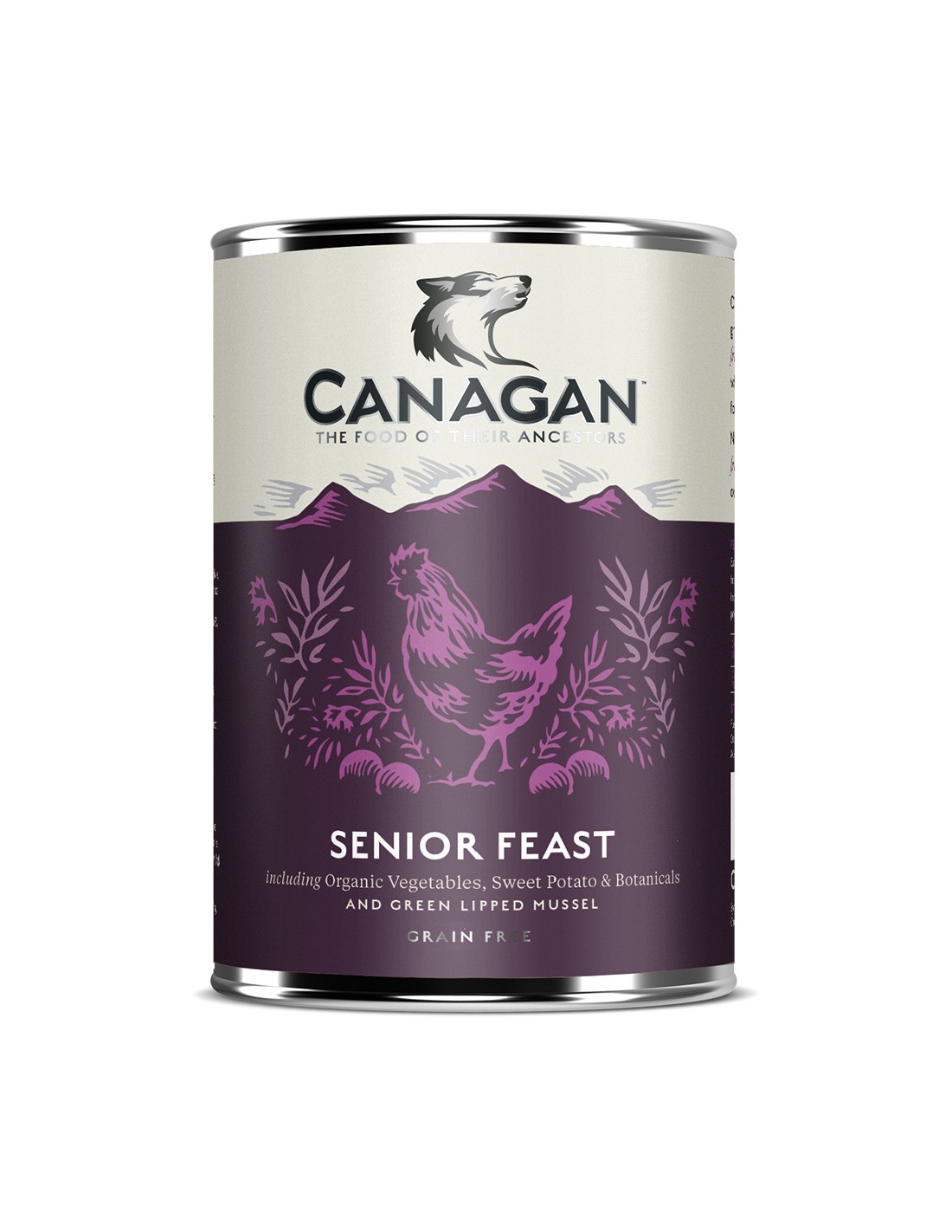 La CANAGAN LATA DE FESTÍN PAVO Y POLLO CAMPEROS PARA PERROS SENIOR - 400 GR es una elección nutricionalmente completa y deliciosa para perros mayores.