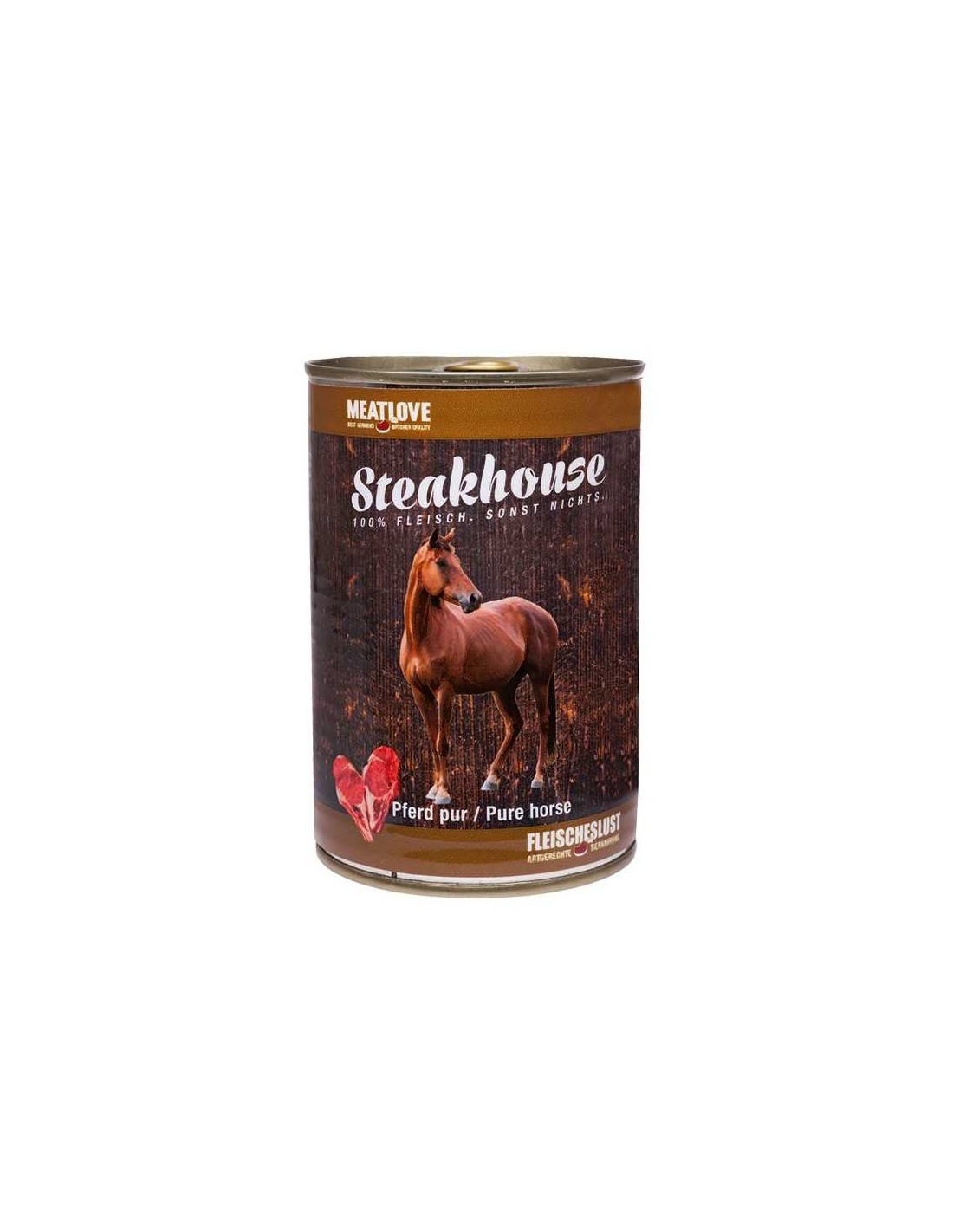 La MEATLOVE STEAKHOUSE CABALLO PURO - 400 GR es una opción nutritiva y deliciosa para mantener a tu perro feliz y lleno de energía.