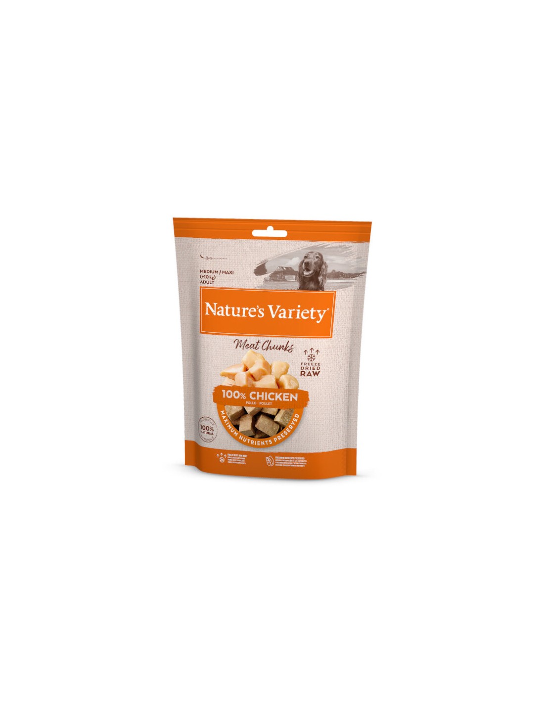 Natures Variety Meat Chunks es un alimento liofilizado para perros, elaborado con pollo de alta calidad.