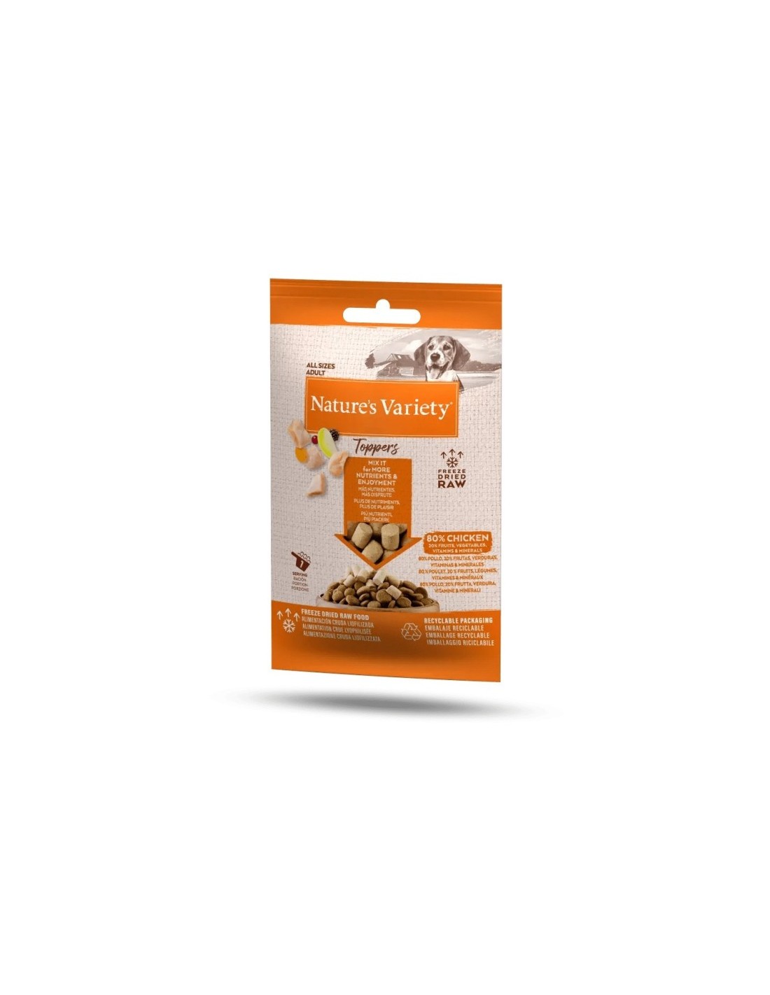Añade un toque de sabor y nutrición extra a la comida de tu perro con Natures Variety Toppers de pollo.