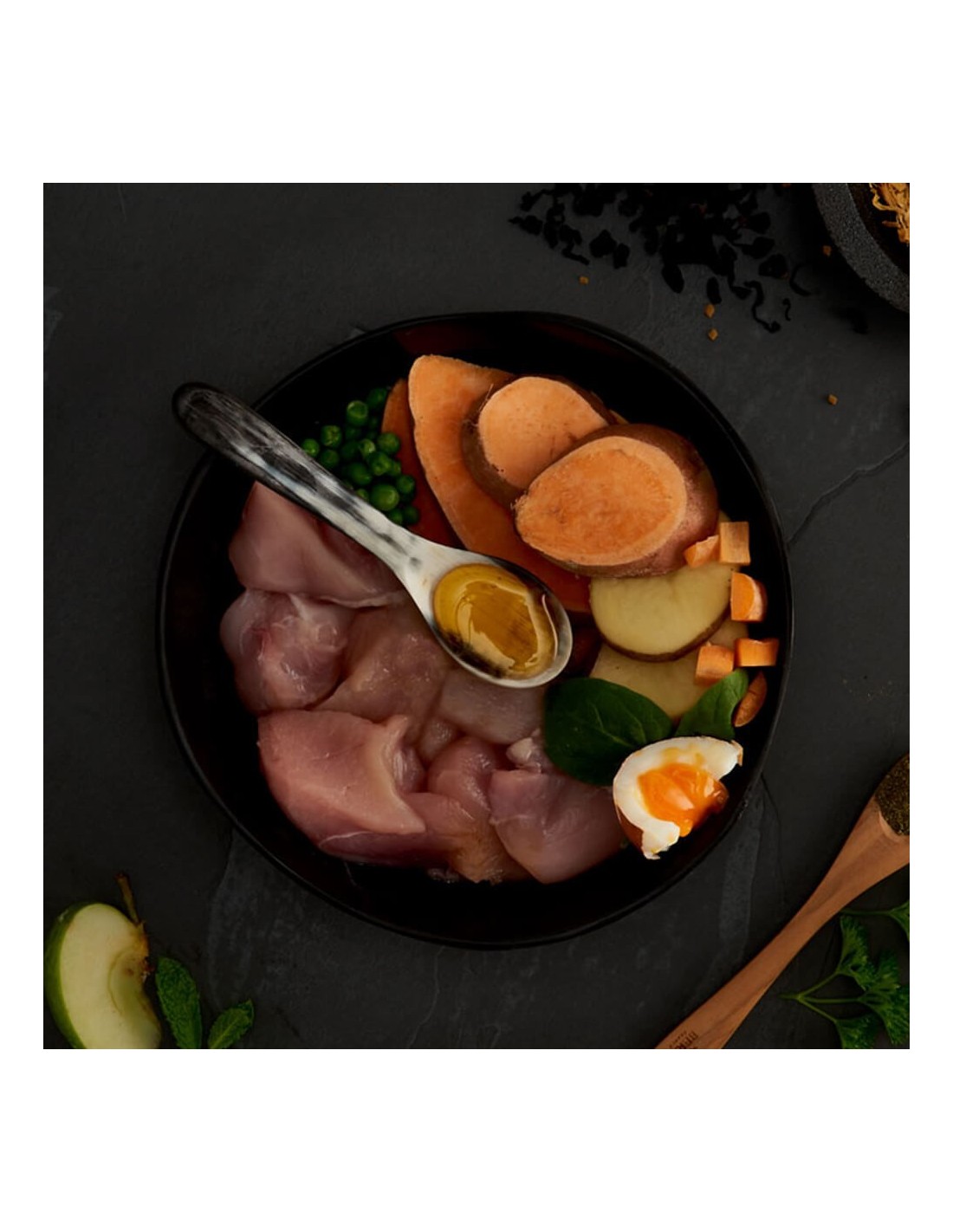 Además, el aceite de salmón añadido asegura la ingesta de ácidos grasos beneficiosos para la piel y el pelaje.