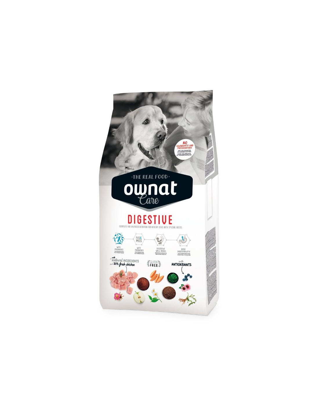 El OWNAT CAR DIGESTIVE DOG es un pienso premium diseñado para perros con necesidades digestivas especiales.