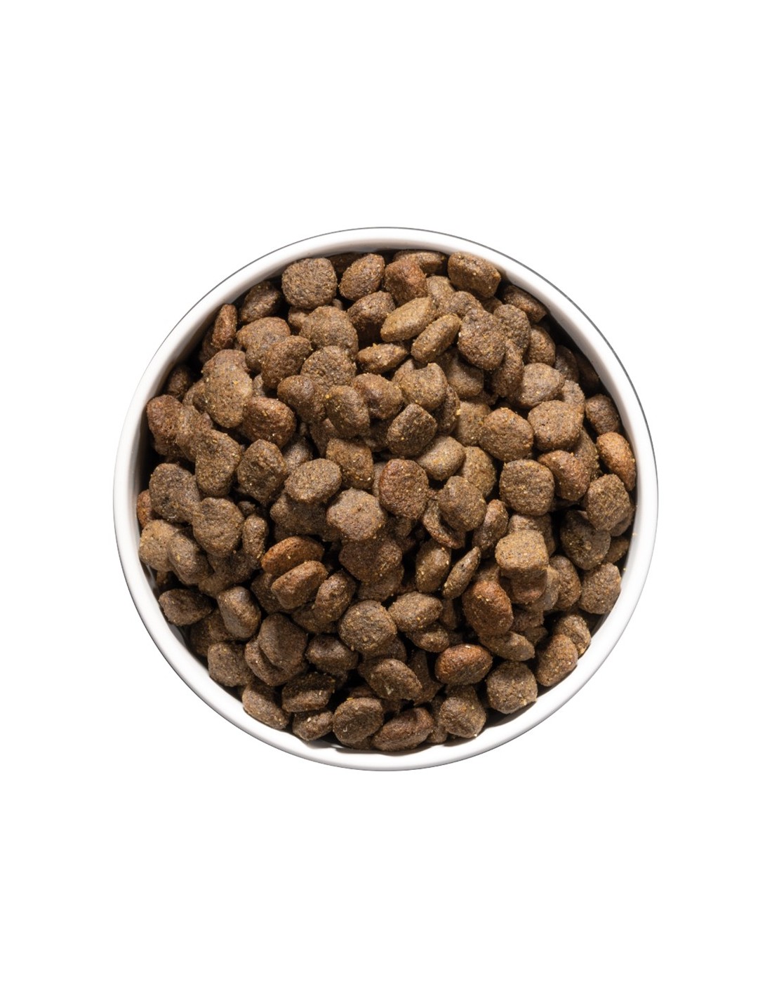 Este alimento está elaborado con pollo fresco, maíz integral y una mezcla de frutas y verduras, como manzanas y arándanos, que aportan antioxidantes y fibra.