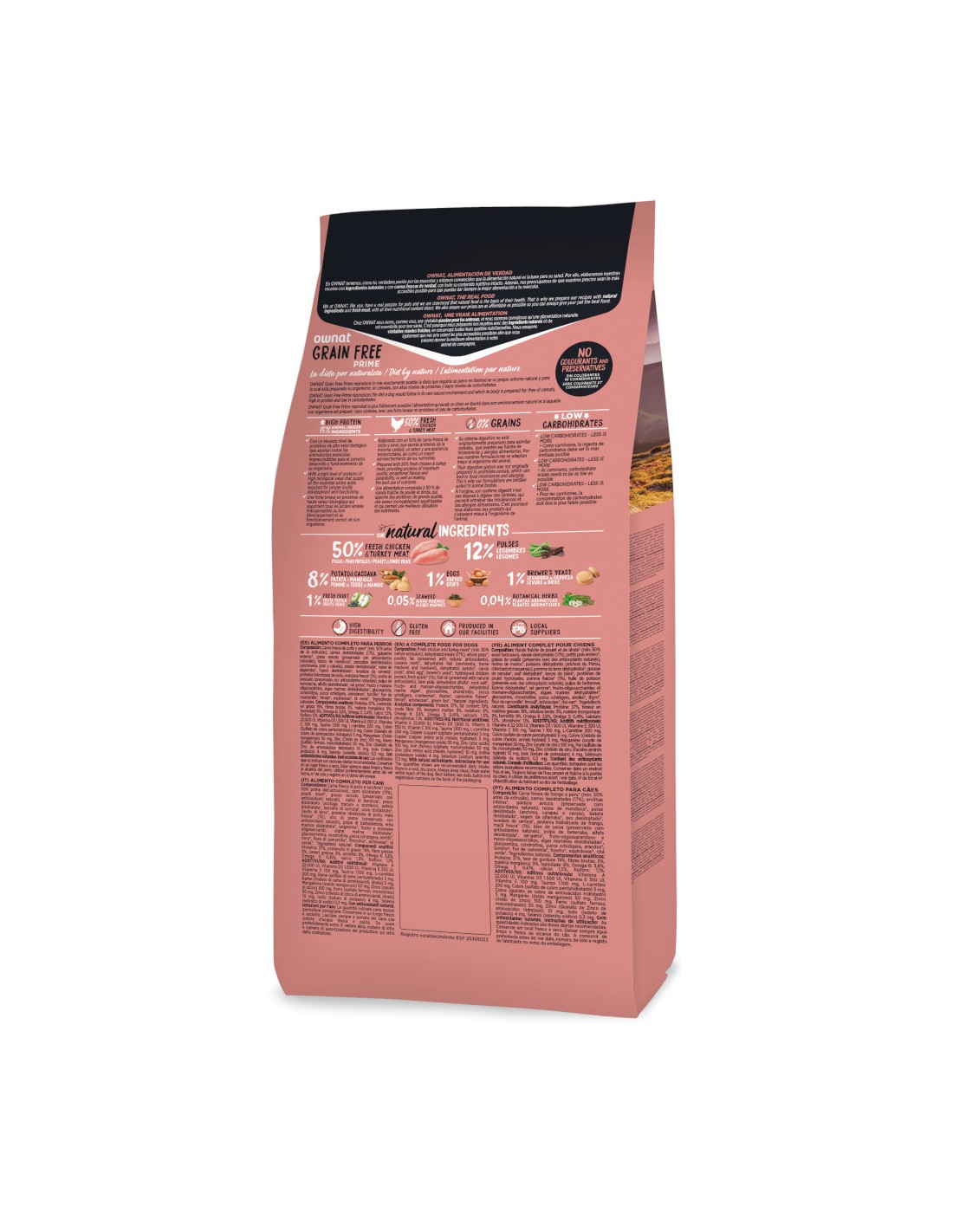 El OWNAT PRIME GRAIN FREE MINI ADULT CHICKEN - TURKEY es la elección ideal para perros adultos de razas pequeñas que necesitan una dieta libre de granos pero rica en nutrientes esenciales.