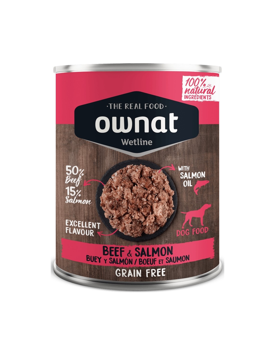 Ideal para perros sensibles, el OWNAT WET BUEY Y SALMÓN minimiza las reacciones adversas y fomenta una digestión óptima.