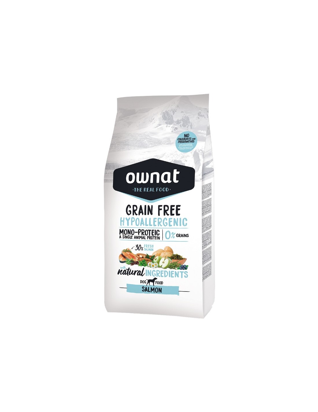 El pienso para perros OWNAT HYPO GRAIN FREE SALMON está diseñado para la nutrición sensible y avanzada de tu fiel amigo. Su fórmula monoproteica de salmón, exclusiva y naturalmente libre de cereales, lo convierte en la solución ideal para perros que requieren una dieta hipoalergénica y de fácil asimilación. Cada croqueta está cargada de los beneficios del pescado fresco, una fuente de proteína magra que favorece la salud articular y promueve una óptima condición física. Al prescindir de granos, se minimiza el riesgo de desarrollar alergias alimentarias, apoyando además una digestión suave y evitando molestias gastrointestinales. Los ácidos grasos esenciales nutren en profundidad, asegurando un manto suave y con brillo. Confía en Ownat para proporcionar una alimentación consciente, de ingredientes limitados y calidad premium, que cuida de su bienestar desde el interior. La elección natural para una vida llena de energía.