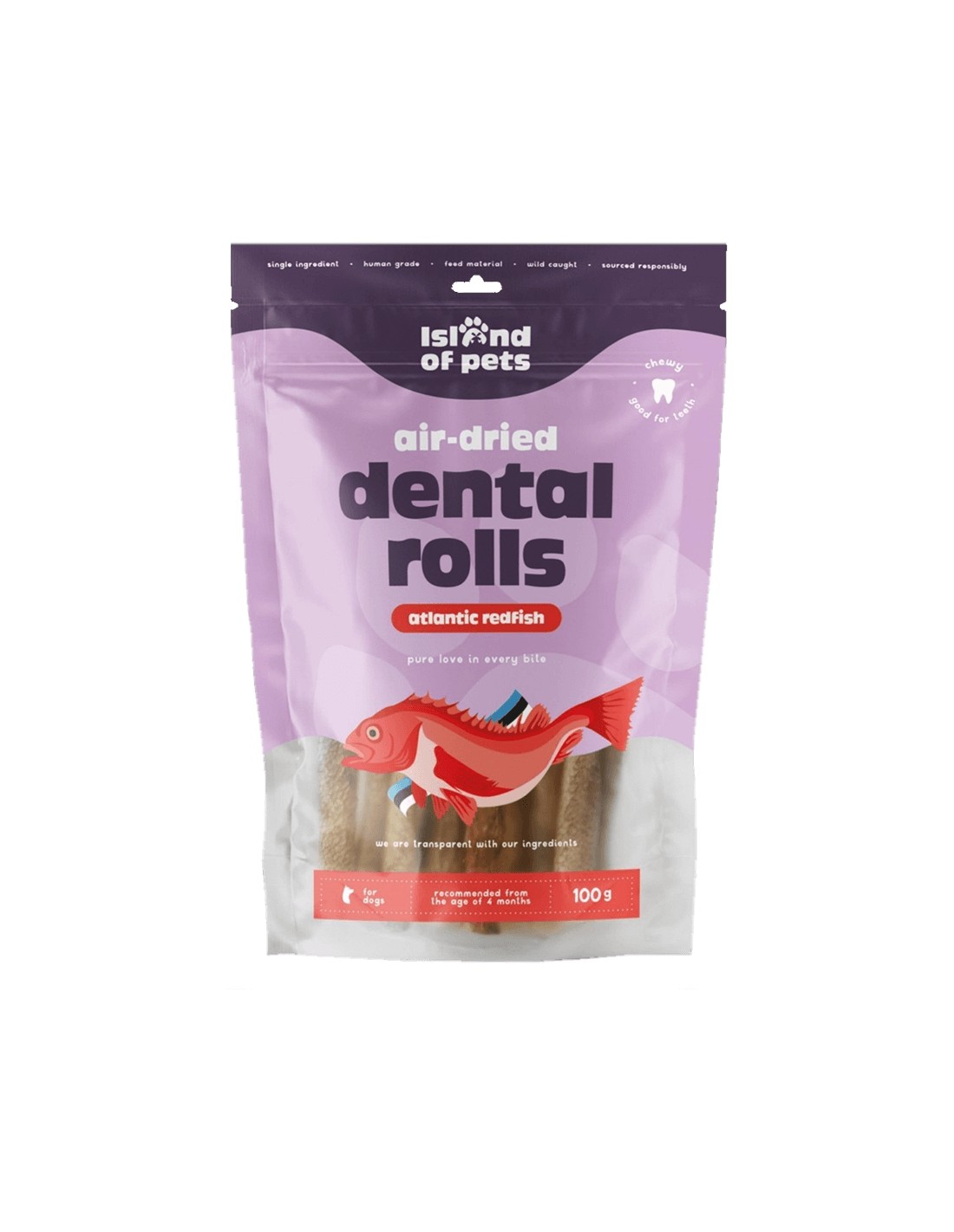 ISLAND OF PETS DENTAL ROLLS REDFISH ROLLITOS DE GALLINETA - 100 GR 100 GR