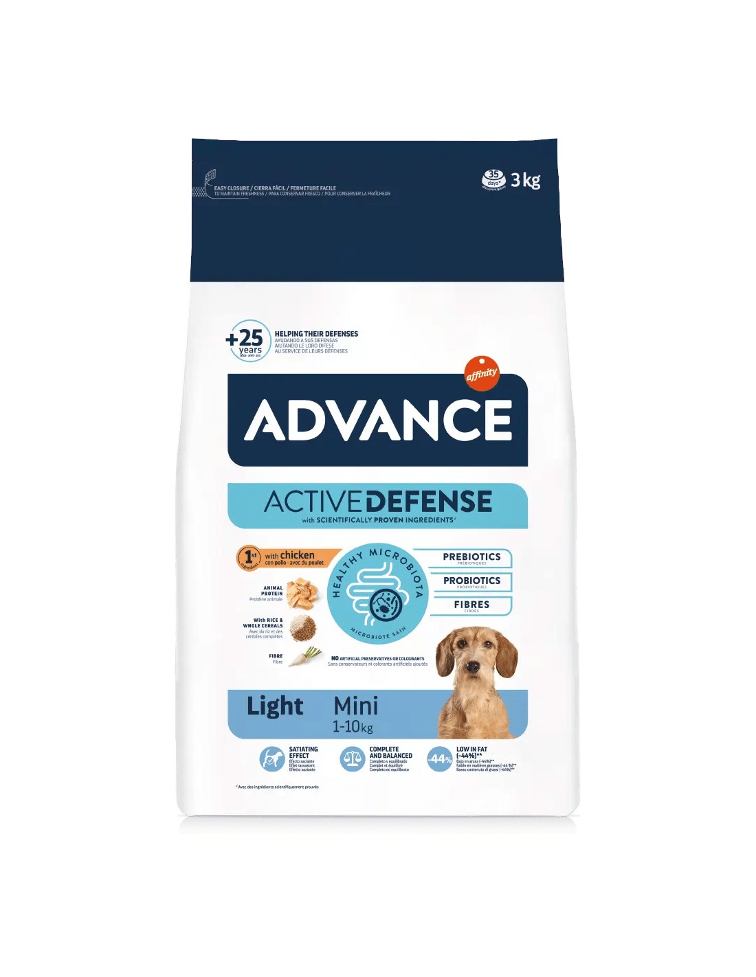El Affinity Advance Light Mini es un alimento de alta calidad diseñado para perros mini con sobrepeso y tendencia a la obesidad.