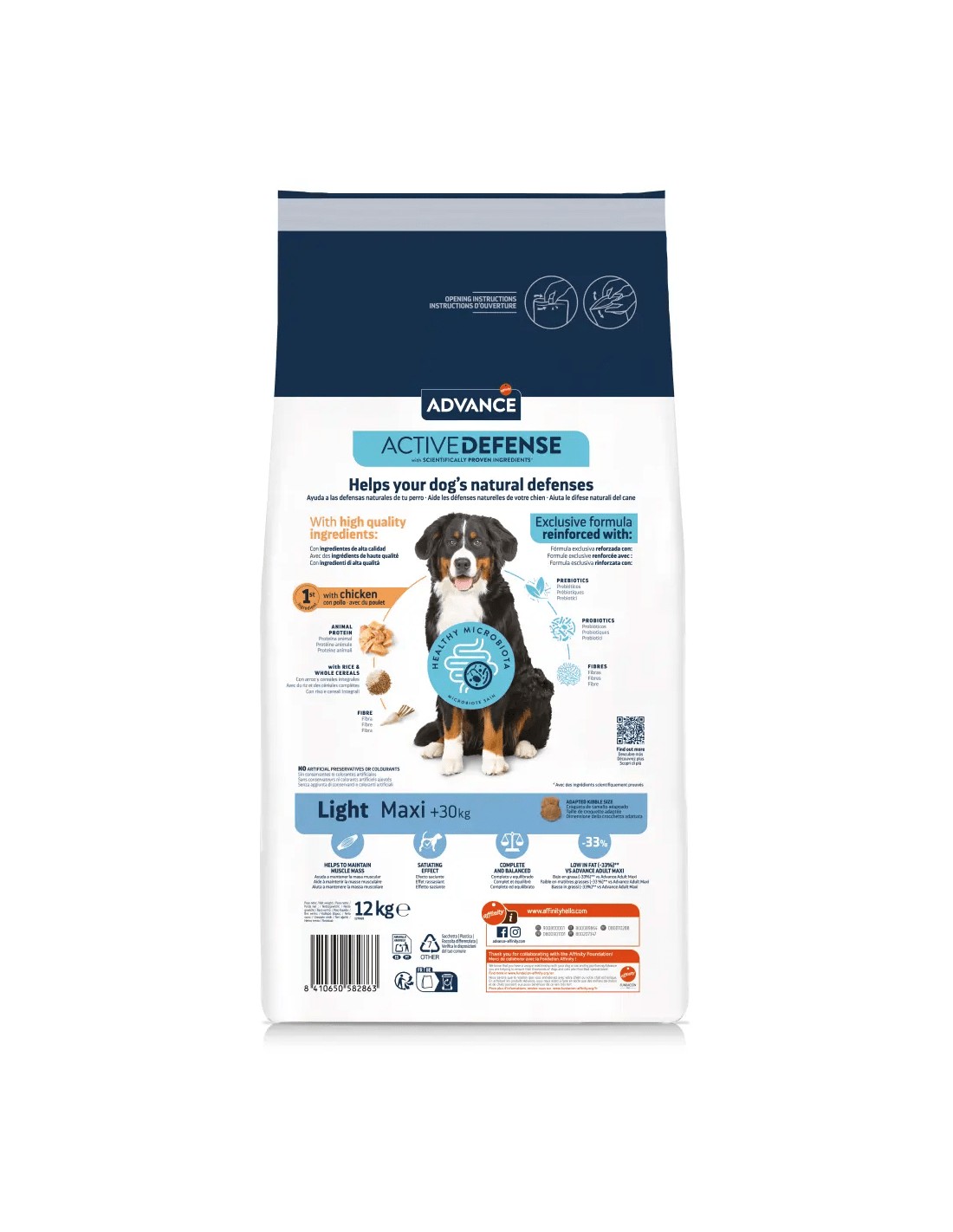 El Affinity Advance Light Maxi - 12 kg es un alimento premium diseñado para perros de razas grandes con tendencia a ganar peso.