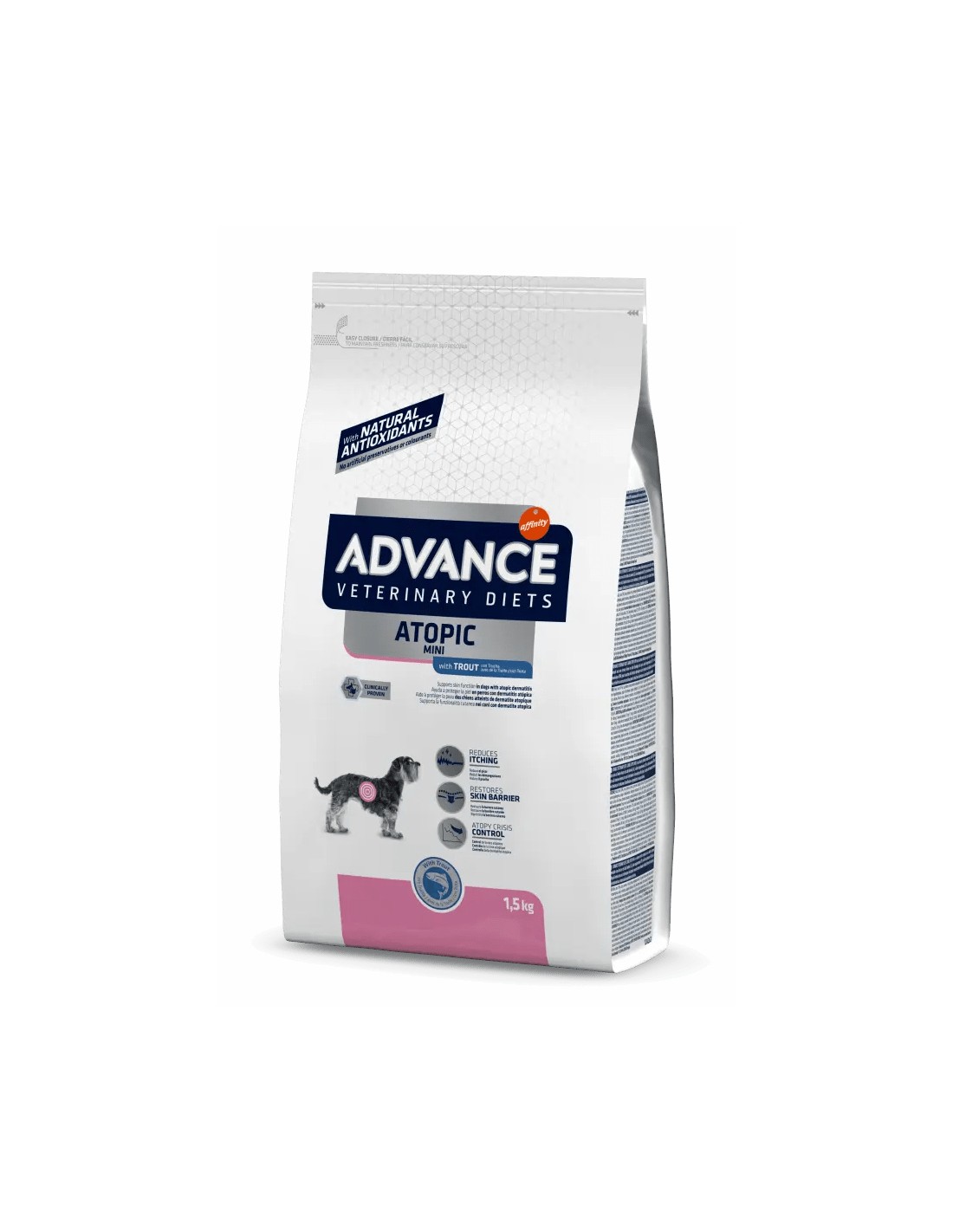 El Advance Veterinary Diets Atopic Mini - 1.5 KG es la solución ideal para perros pequeños que padecen de dermatitis atópica y sensibilidades cutáneas.