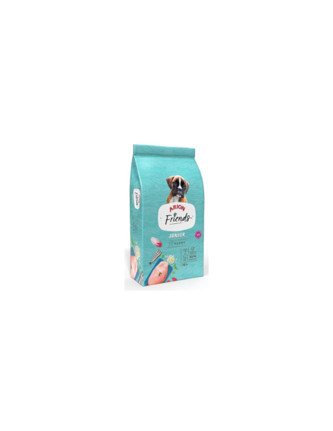 Con Arion Friends Junior 30/14, tu cachorro disfrutará de una nutrición completa que favorece su desarrollo saludable.