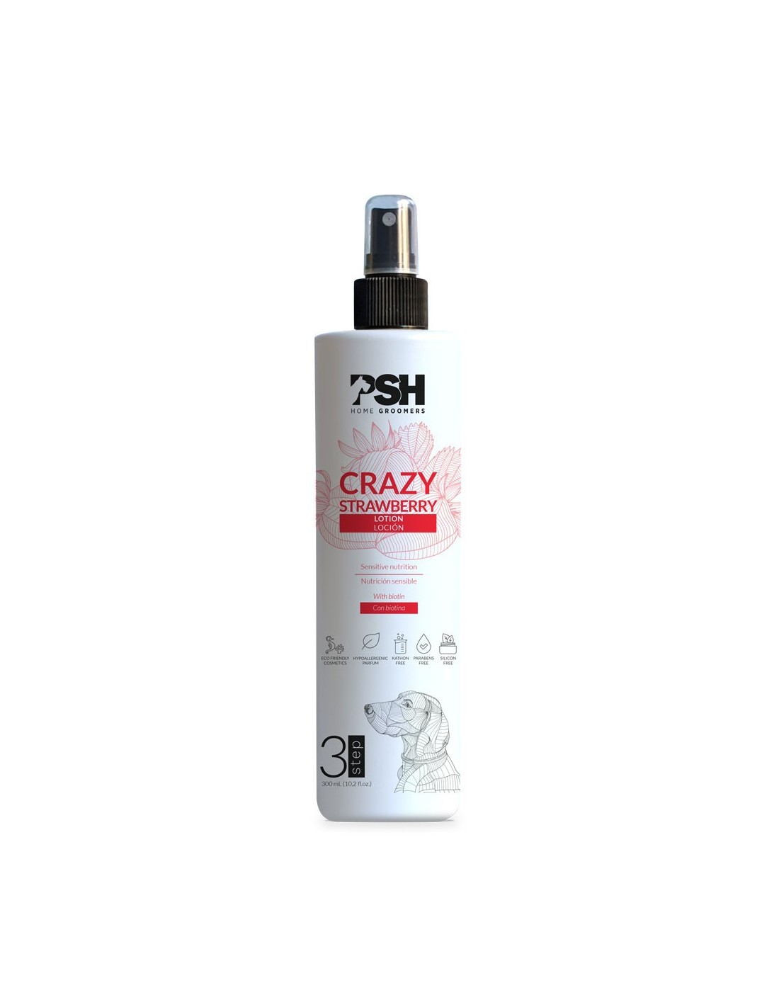La Loción PSH Crazy Strawberry - 300 ml es una solución innovadora para el cuidado del pelaje de tu mascota.