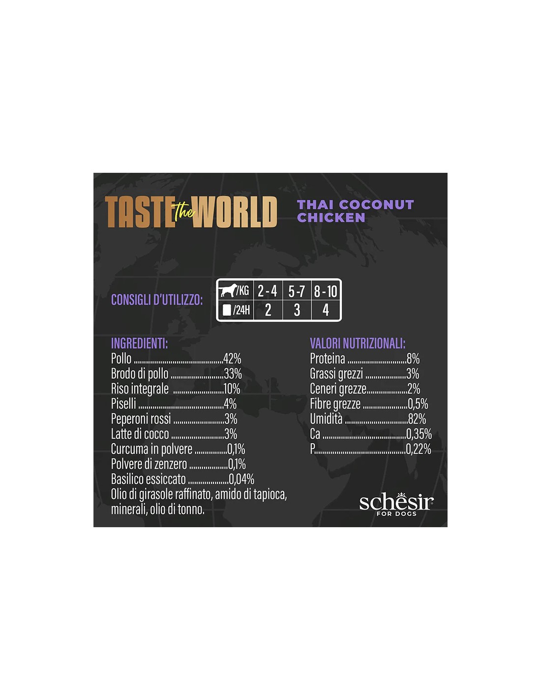 Dog Taste Of The World Pollo Con Coco Thai Caja (8 Latas X 150gr) Schesir - 8 X 150 Gr