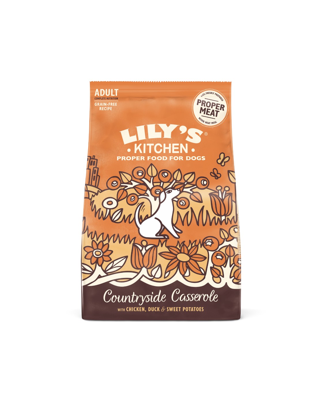 Lilys Kitchen presenta su Chicken - Duck Dry Food, un alimento seco completo y equilibrado para perros adultos.Hecho con pollo y pato frescos, este pienso proporciona una fuente de proteínas de alta calidad y es ideal para perros con paladares exigentes.