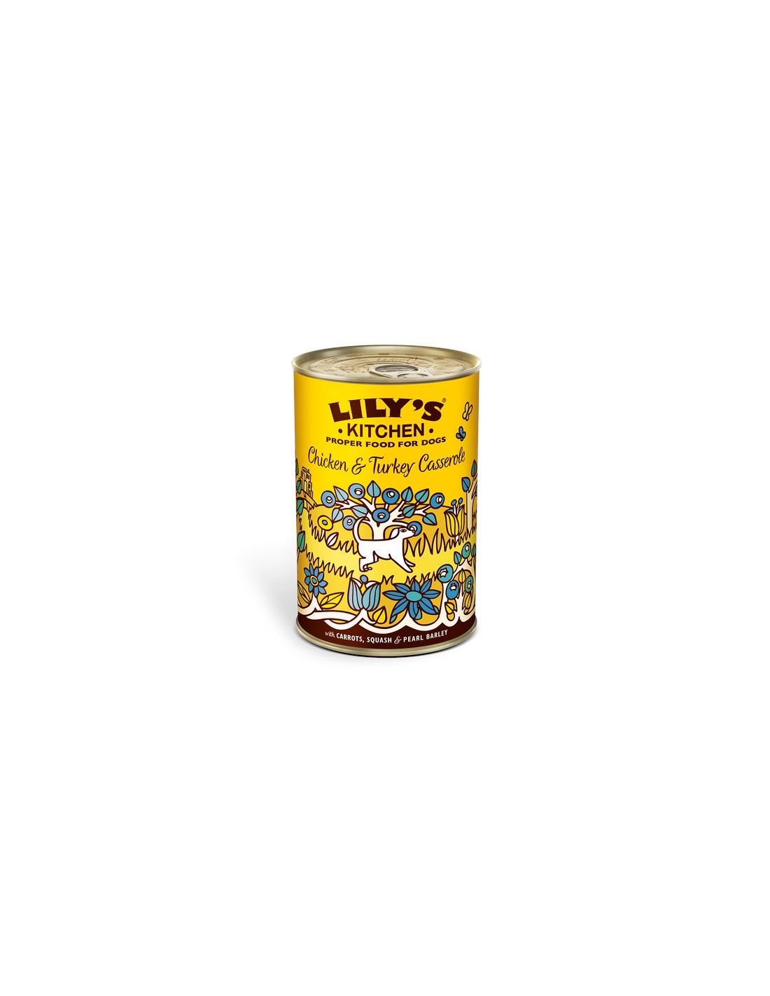 Alimento Húmedo para Perros de Lilys Kitchen - Chicken - Turkey Casserole (400 gr): Lilys Kitchen presenta su Chicken - Turkey Casserole, un alimento húmedo completo y equilibrado para perros adultos.Hecho con pollo y pavo frescos, este alimento proporciona una fuente de proteínas de alta calidad y es ideal para perros con paladares exigentes.