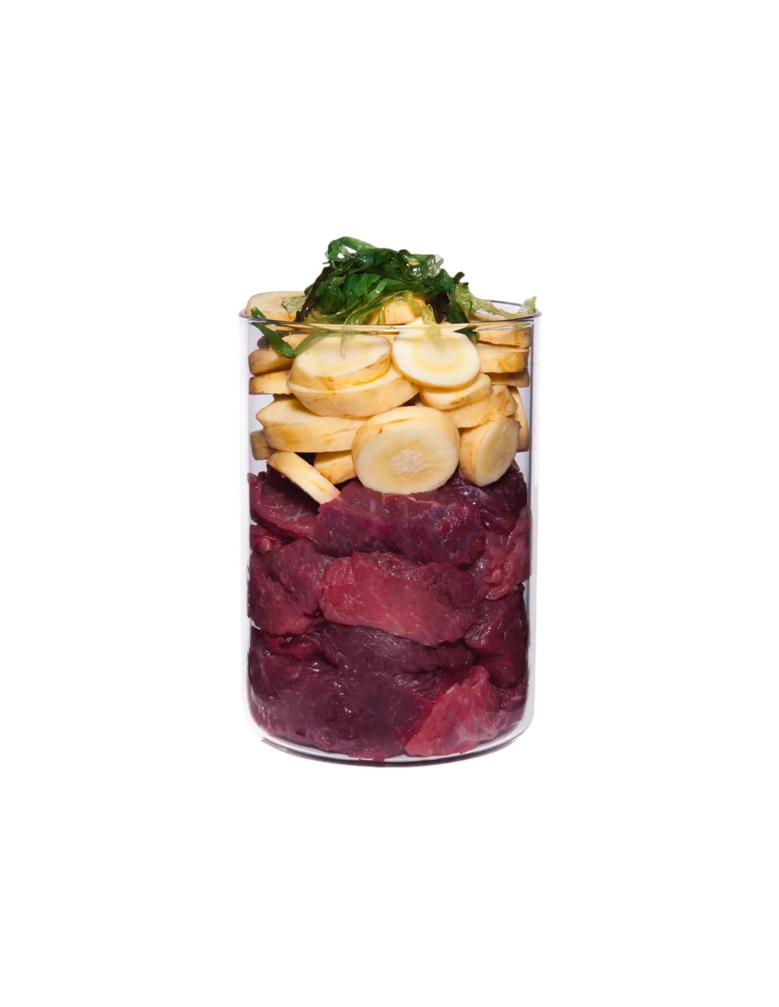 Con 400 gramos de contenido, esta fórmula gourmet incluye carne de avestruz, conocida por ser una proteína hipoalergénica, y chirivía, que aporta fibra y nutrientes esenciales.