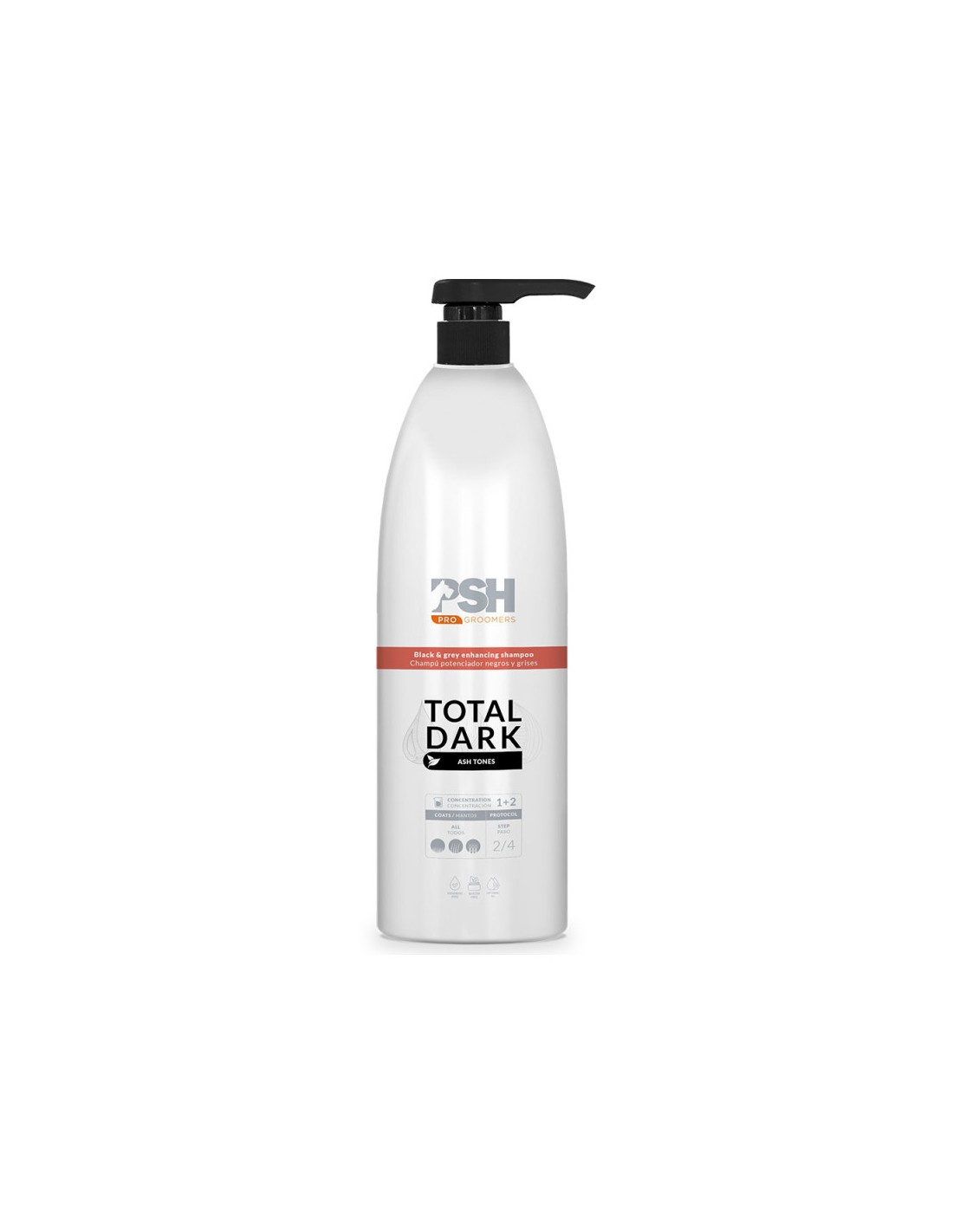 Descubre el PSH Total Dark Shampoo - 1 Litro, un champú diseñado para revitalizar y embellecer los pelajes negros y grises.