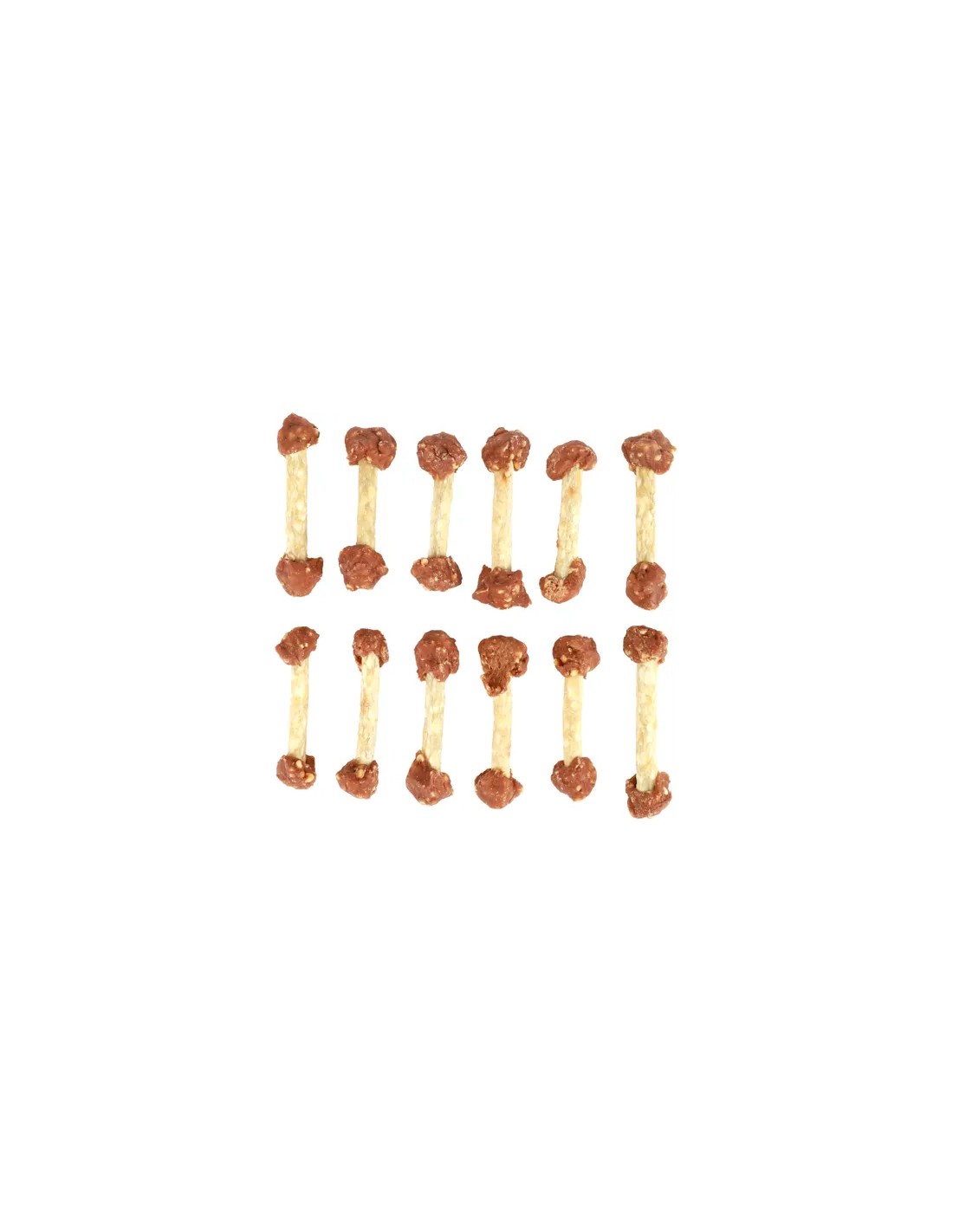 Con un contenido de 150 gramos, estas golosinas están hechas con carne de conejo y arroz, proporcionando una fuente de proteínas de alta calidad y carbohidratos para mantener la energía de tu mascota.