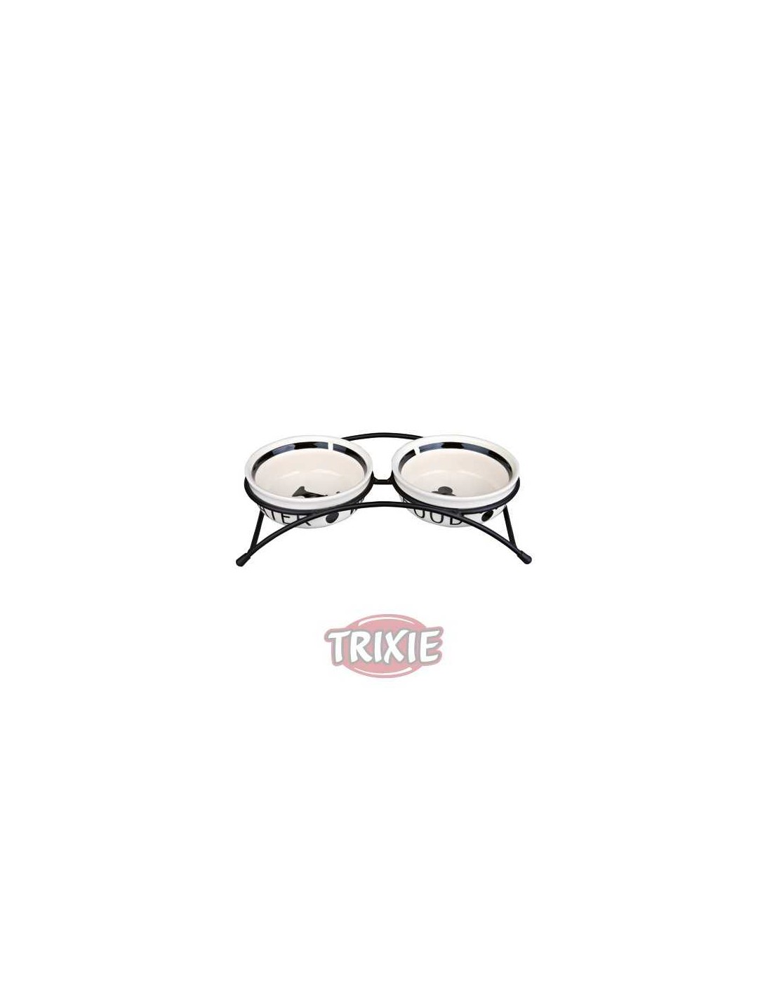 TRIXIE SET COMEDEROS CERÁMICOS CON PIE BLANCO / NEGRO BLANCO / NEGRO BLANCO / NEGRO Ø13 CM ~ 2 X 250 ML MARRÓN / NEGRO Ø20 - 2