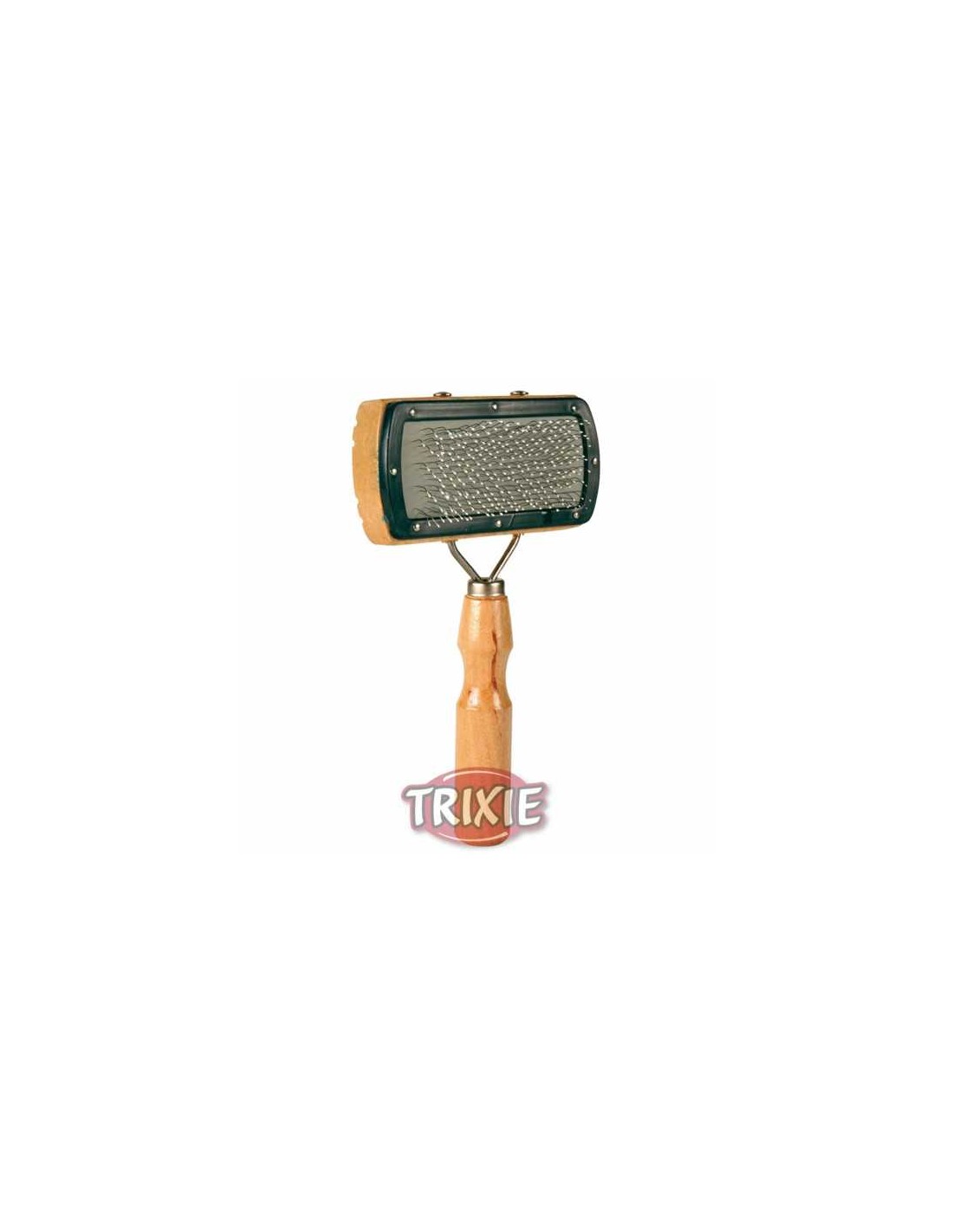 La carda blanda con cepillo de Trixie es el aliado perfecto para mantener el pelaje de tu mascota en óptimas condiciones. Sus cerdas suaves y flexibles son ideales para desenredar y eliminar el pelo suelto, sin dañar la piel de tu perro o gato. Gracias a su diseño ergonómico, esta carda se adapta cómodamente a tu mano, facilitando el proceso de cepillado. Además, su mango antideslizante garantiza un agarre firme durante su uso. Mantén a tu mascota con un pelaje suave, brillante y libre de enredos con l