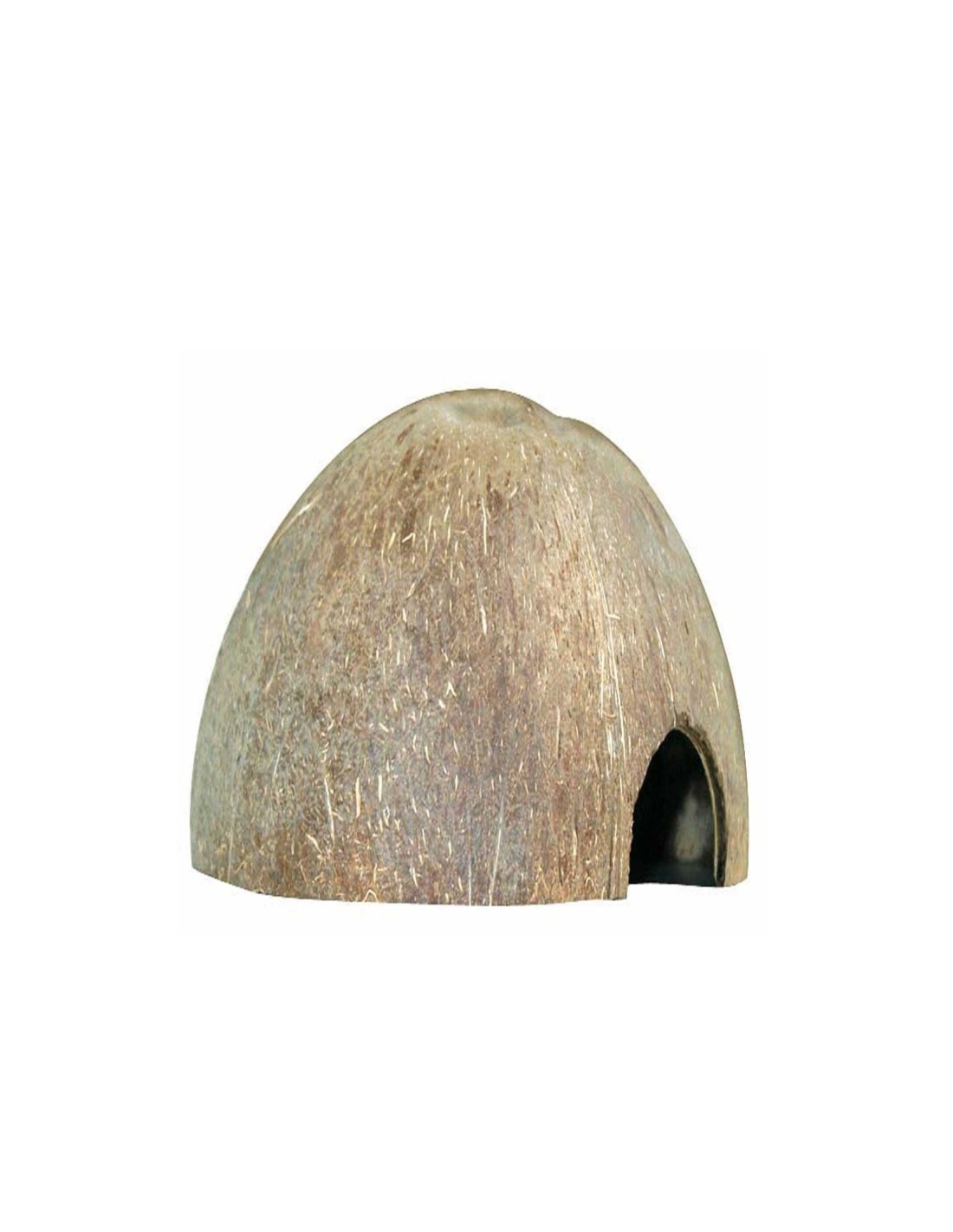 El diseño de la cascara de coco ofrece una textura interesante y una forma única que encaja perfectamente en cualquier terrario.