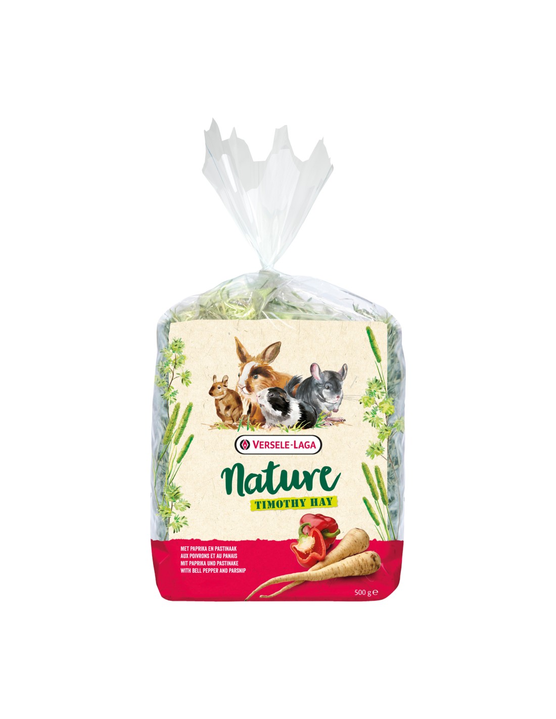 El VERSELE HENO TIMOTHY BELL PEPPER - 500 GR es una elección excelente para nutrir a tus pequeños roedores y conejos.