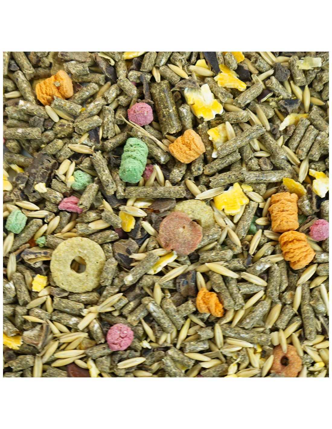 Con una combinación de semillas, cereales y vegetales seleccionados, esta mezcla proporciona los nutrientes esenciales para promover la salud y el bienestar de los conejos enanos.