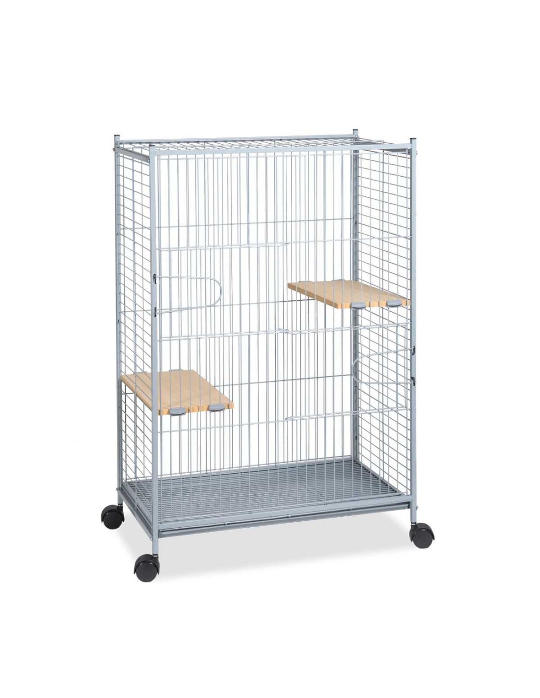 Con unas dimensiones de 41 x 70 x 106 cm, esta jaula ofrece un entorno amplio y seguro donde las chinchillas pueden jugar y descansar.