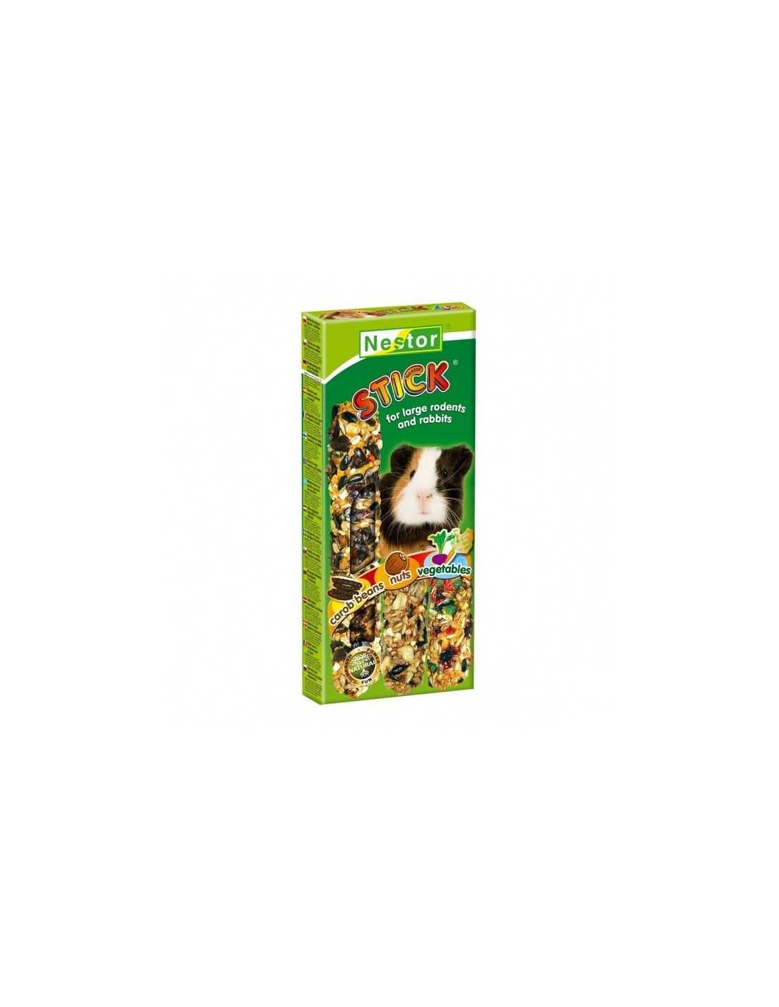 El NESTOR STICK 3 EN 1 con Algarroba, Nueces y Verduras para Roedores 175 GR (3 Unidades) es la opción ideal para enriquecer la dieta de tus roedores.