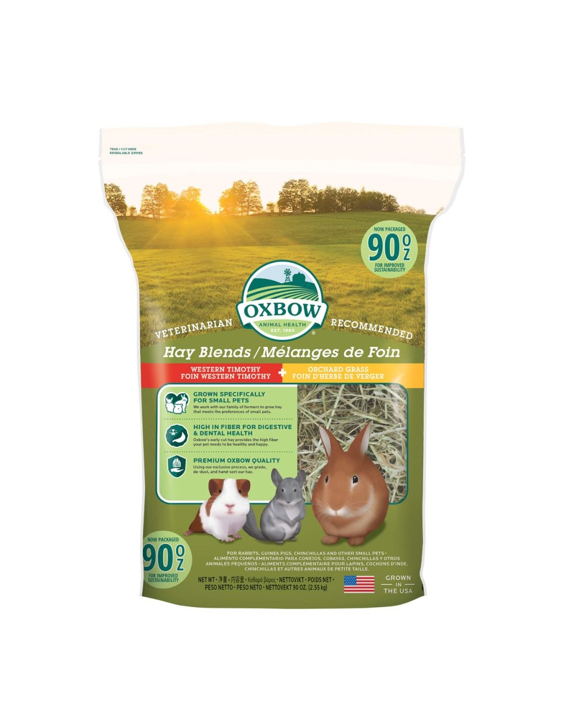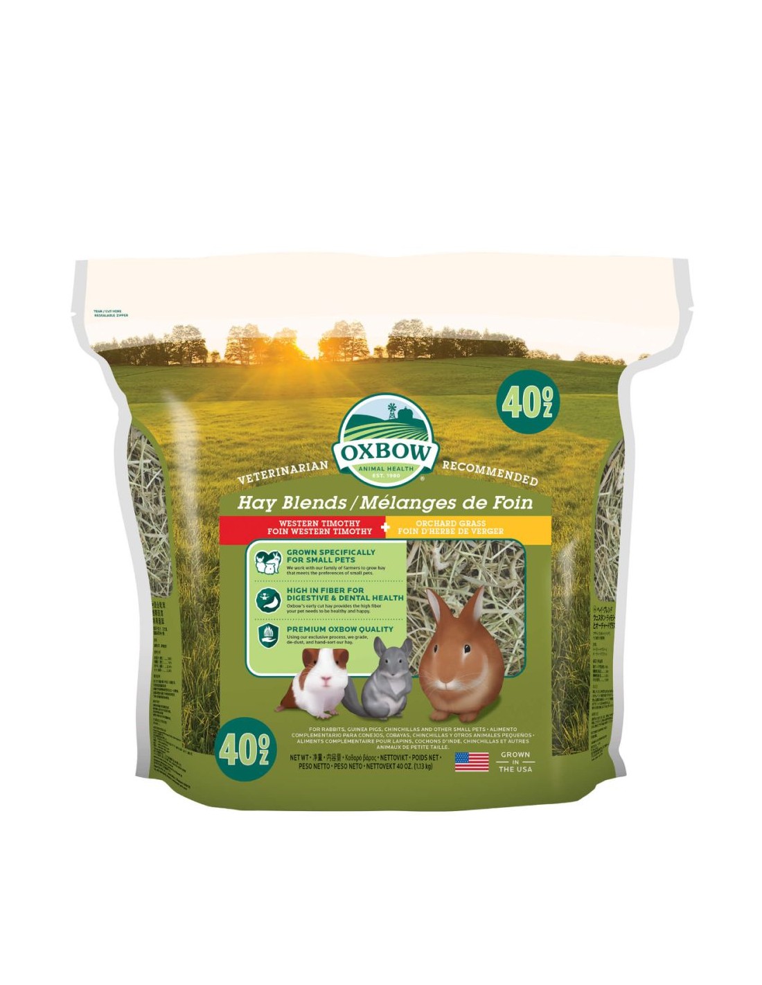 El heno Oxbow Blend Timothy-Huerto es un alimento natural y nutritivo para conejos, cobayas y otros roedores.