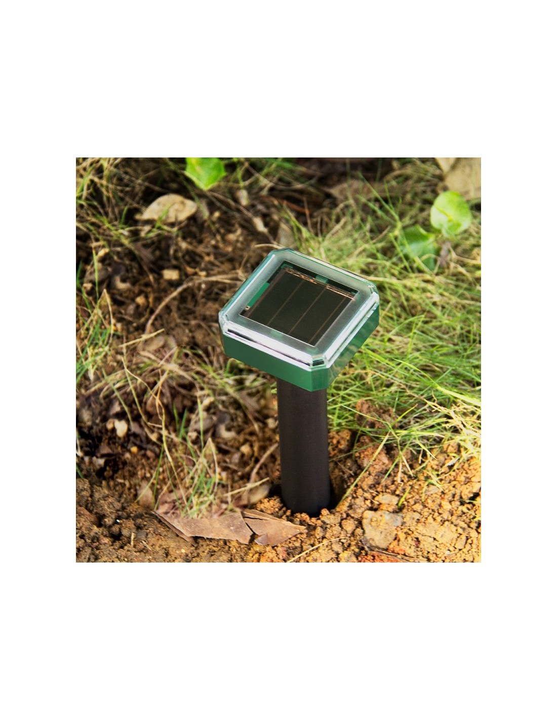 Funciona con energía solar y emite ondas ultrasónicas que resultan molestas para los roedores, pero imperceptibles para los humanos.